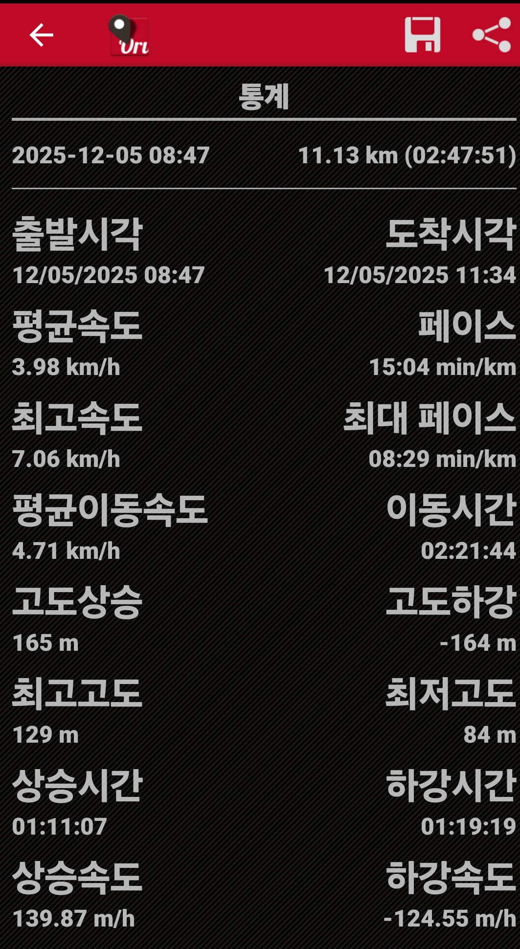 ▣ 산행시간 : 11.13km, 휴식포함2시간50분