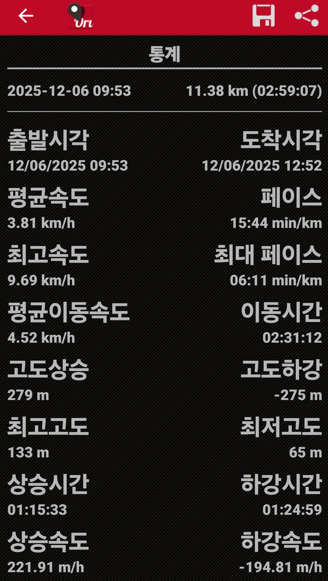▣ 산행시간 : 11.38km, 휴식포함3시간10분