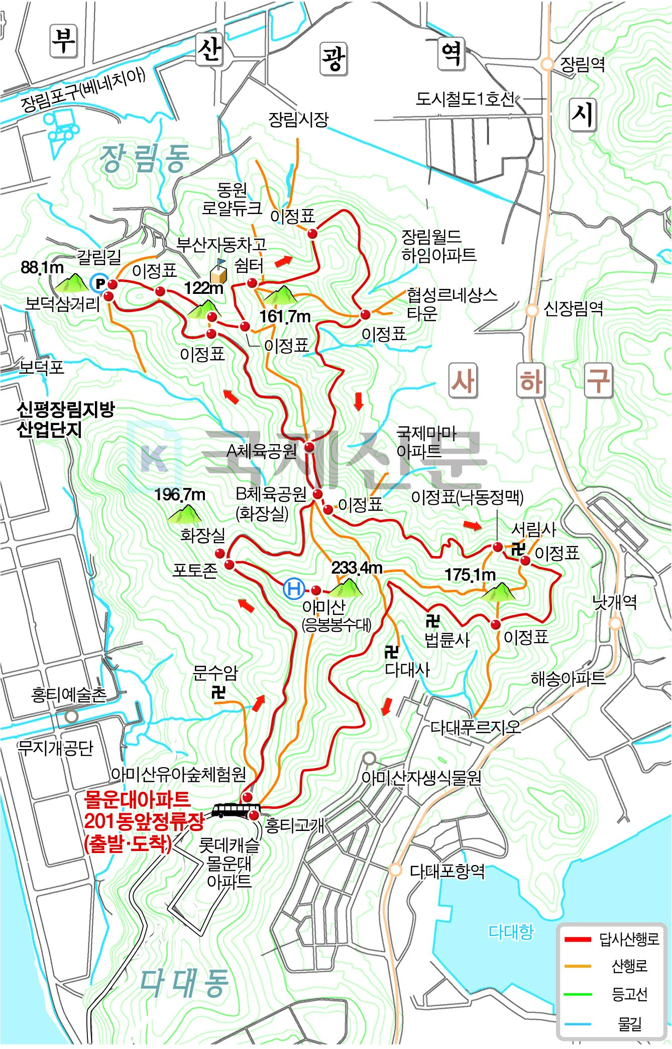 부산 사하구 아미산 둘레길 지도